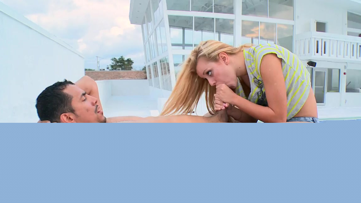 Blonde teen Jessie Rogers sucks big dick by the pool