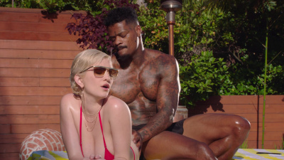 Sky is ashamed to say it, but she's never been with a black guy. She's always prided herself on being open-minded and a free spirit, having lots of partners throughout her crazy college years. Before she leaves la she decides to fix that problem. Jason, her hot neighbor, has always been on her mind but for as long as she's known him, he's been in a relationship. But one morning, when Sky is hanging out on her balcony, she hears Jason arguing with his GF on the phone. Sky sees this as an opportunity and puts on her skimpiest bikini and goes out to the communal pool to get Jason's attention.